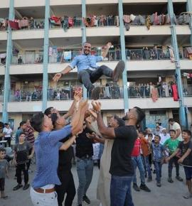 حفل زفاف اقيم في مدرسة تؤوي نازحين في مخيم النصيرات وسط قطاع غزة19