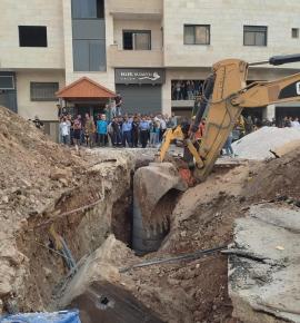 طواقم الانقاذ تشرع بعملية انقاذ عمال تعرضوا لانهيار ترابي اثناء عملهم في نابلس19