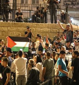 مقدسيون يحتفلون بانتصارهم على الاحتلال في انتفاضة باب العامود، ويقومون بإزالة السواتر الحديدية التي كانت تقيد الحركة بالمنطقة19