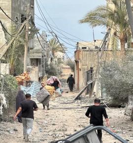 مواطنون يتفقدون الدمار الذي لحق بممتلكاتهم بعد انسحاب قوات الاحتلال من غرب مخيم النصيرات19